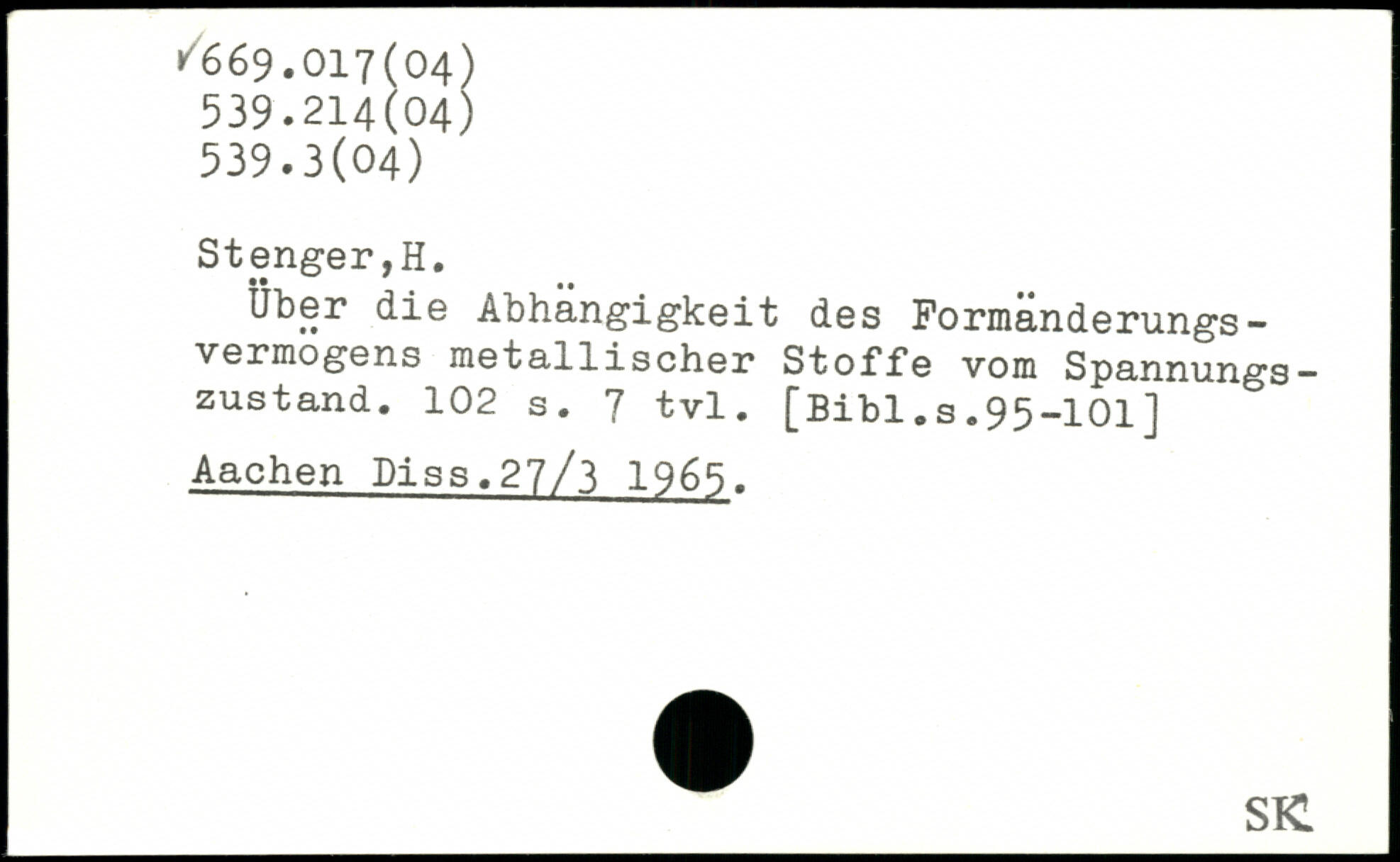 Uber die Abhängigkeit des Formänderungsvermögens metallischer Stoffe vom Spannungszustand.