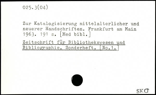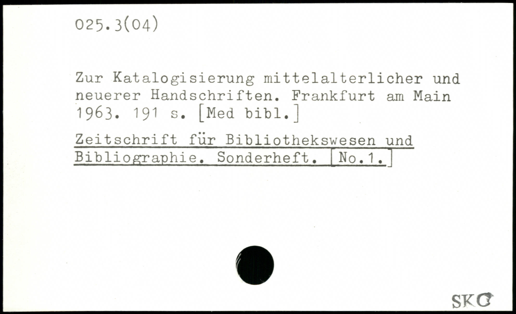 Zur Katalogisierung mittelalterlicher und neuerer Handschriften.