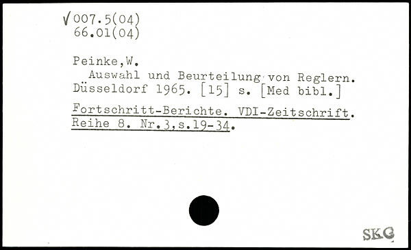 ^Auswahl und Beurteilung von Reglern. Düsseldorf 1965. [15] s. [Med bibl.] Portschritt-Berichte. VDI-Zeitschrift. Reihe 8, Nr,l.s.19-14. __SK-Q