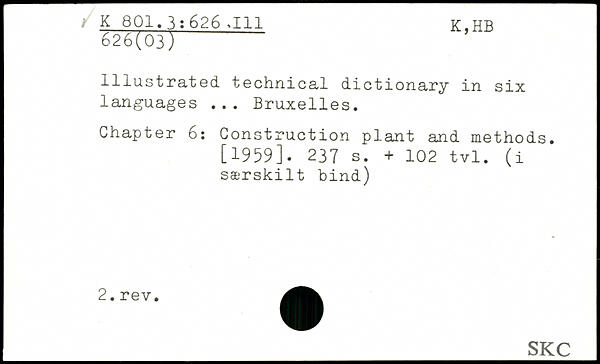 Illustrated technical dictionary in six languages ... Bruxelles. Chapter 6: Construction plant and methods.