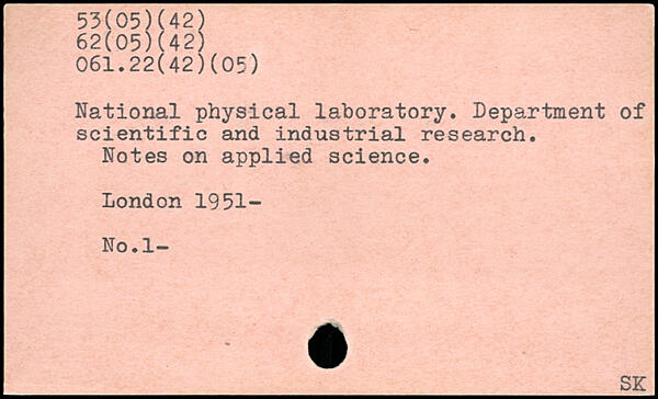 National physical laboratory. Department of scientific and industrial research. Notes on applied science.