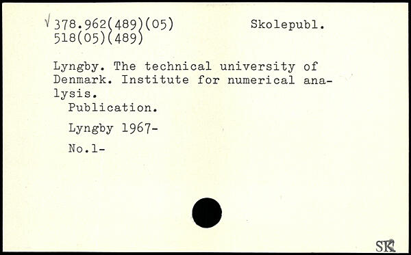 Lyngby. The technical university of Denmark. Institute for numerical analysis. Publication. Lyngby 1967- No.1-