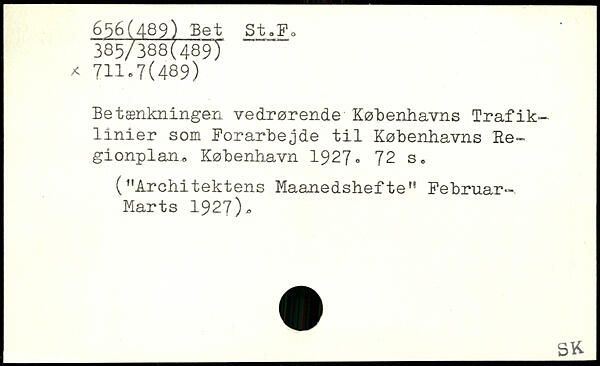 Betænkningen vedrørende Københavns Trafik-linier som Forarbejde til Københavns Regionplan,