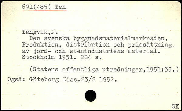 Len svenska byggnadsmaterialmarknaden. Produktion, distribution och prissättning, av jord- och stenindustriens material.