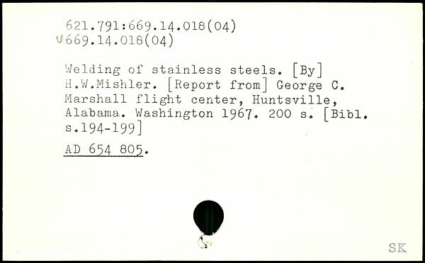 Welding of stainless steels. [By] H.W.Mishler. [Report from] George C. Marshall flight center, Huntsville, Alabama.