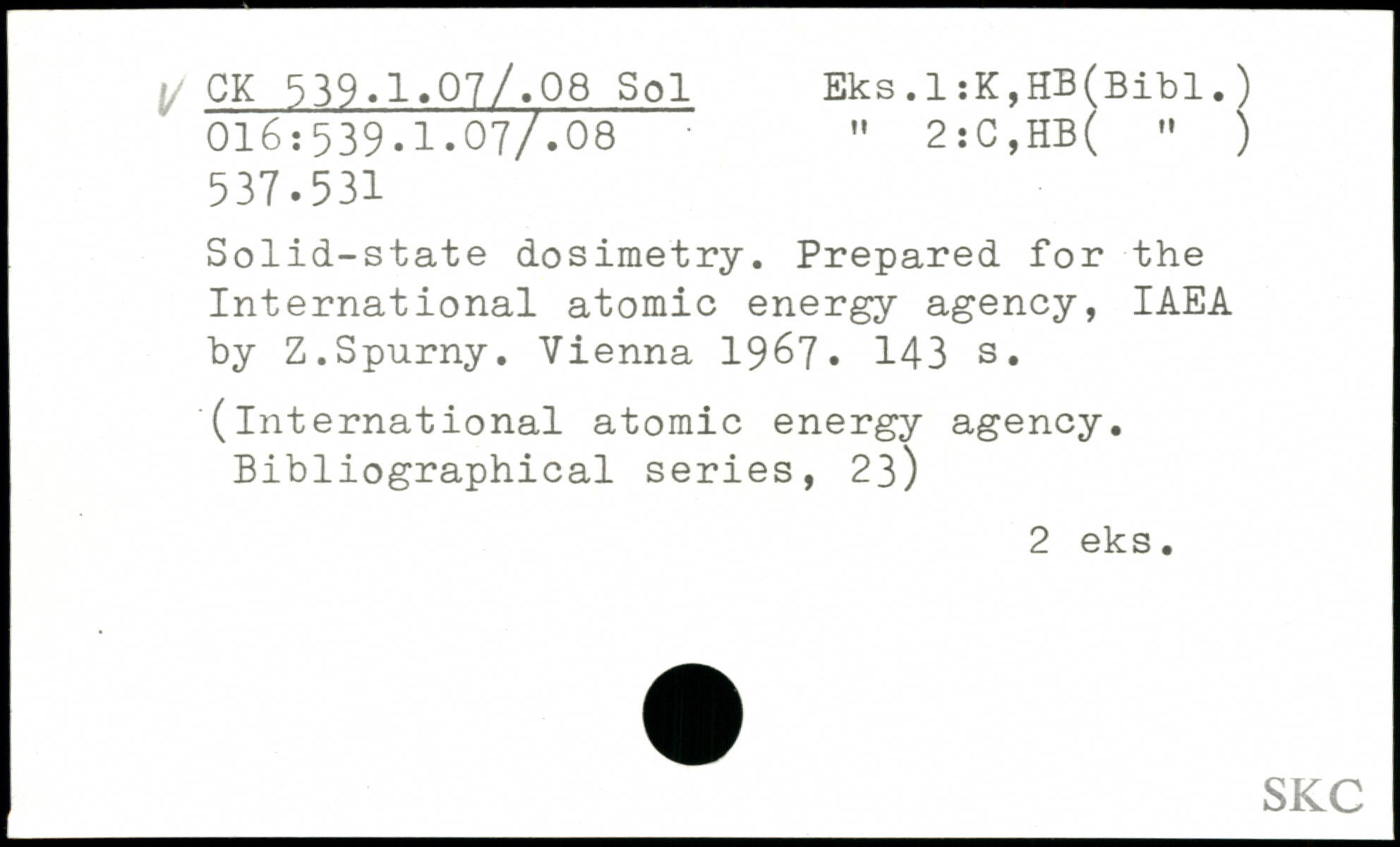 Solid-state dosimetry. Prepared for the International atomic energy agency, IAEA by Z.Spurny. Vienna 1967.