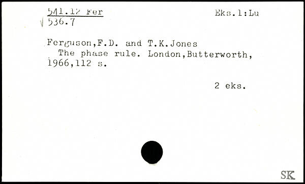 .Ferguson,F.D. and T.K.Jones The phase rule.