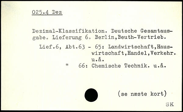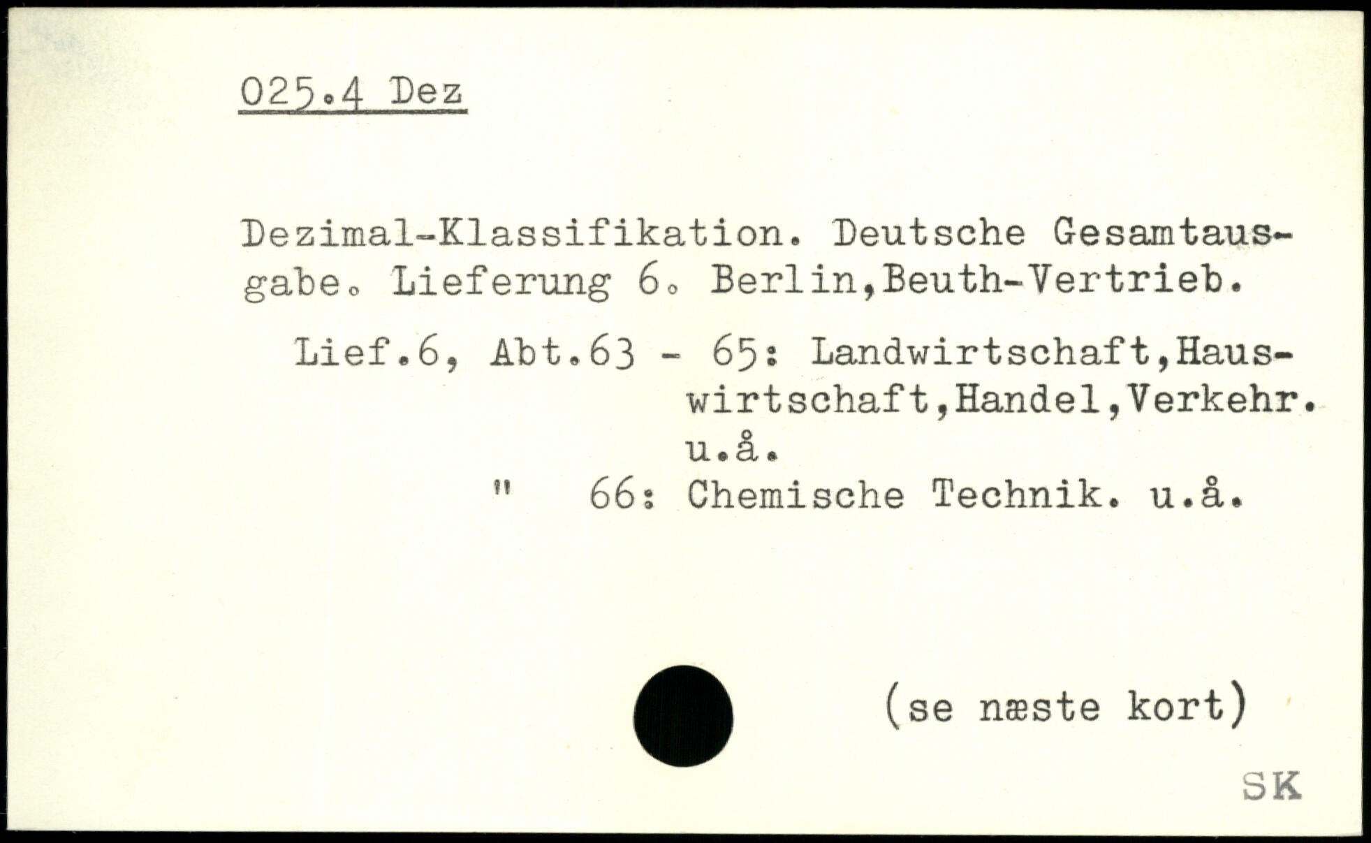 Dezimal-Klassifikation. Deutsche Gesamtausgabe o Lieferung 6, Berlin,Beuth-Vertrieb. Lief.6, Abt.63 - 65: Landwirtschaft,Hauswirtschaft , Handel , Verkehr, " 66: Chemische Technik, u.å.