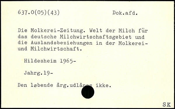 Die Molkerei-Zeitung. Welt der Milch für das deutsche Milchwirtschaftsgebiet und die Auslandsbeziehungen in der Molkerei-und Milchwirtschaft. Hildesheim 1965- Jahrg.19- Den lobende arg. udl^^^ ikke.