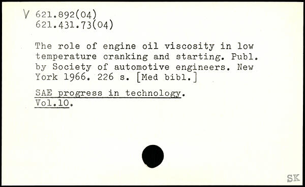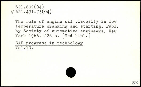 The role of engine oil viscosity in low temperature cranking and starting.