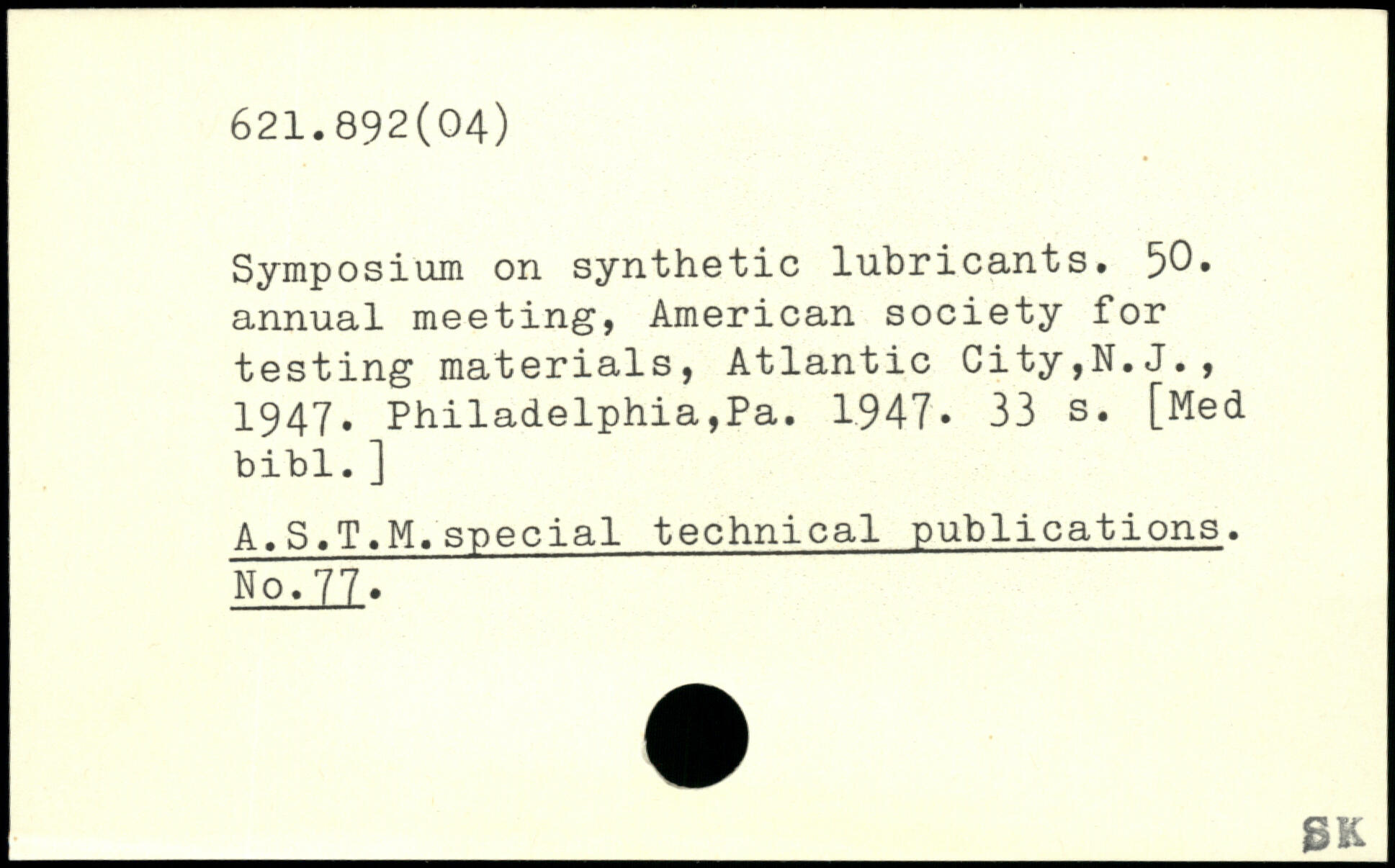 Symposium on synthetic lubricants. 50, annual meeting, American society for testing materials