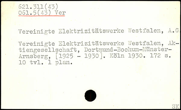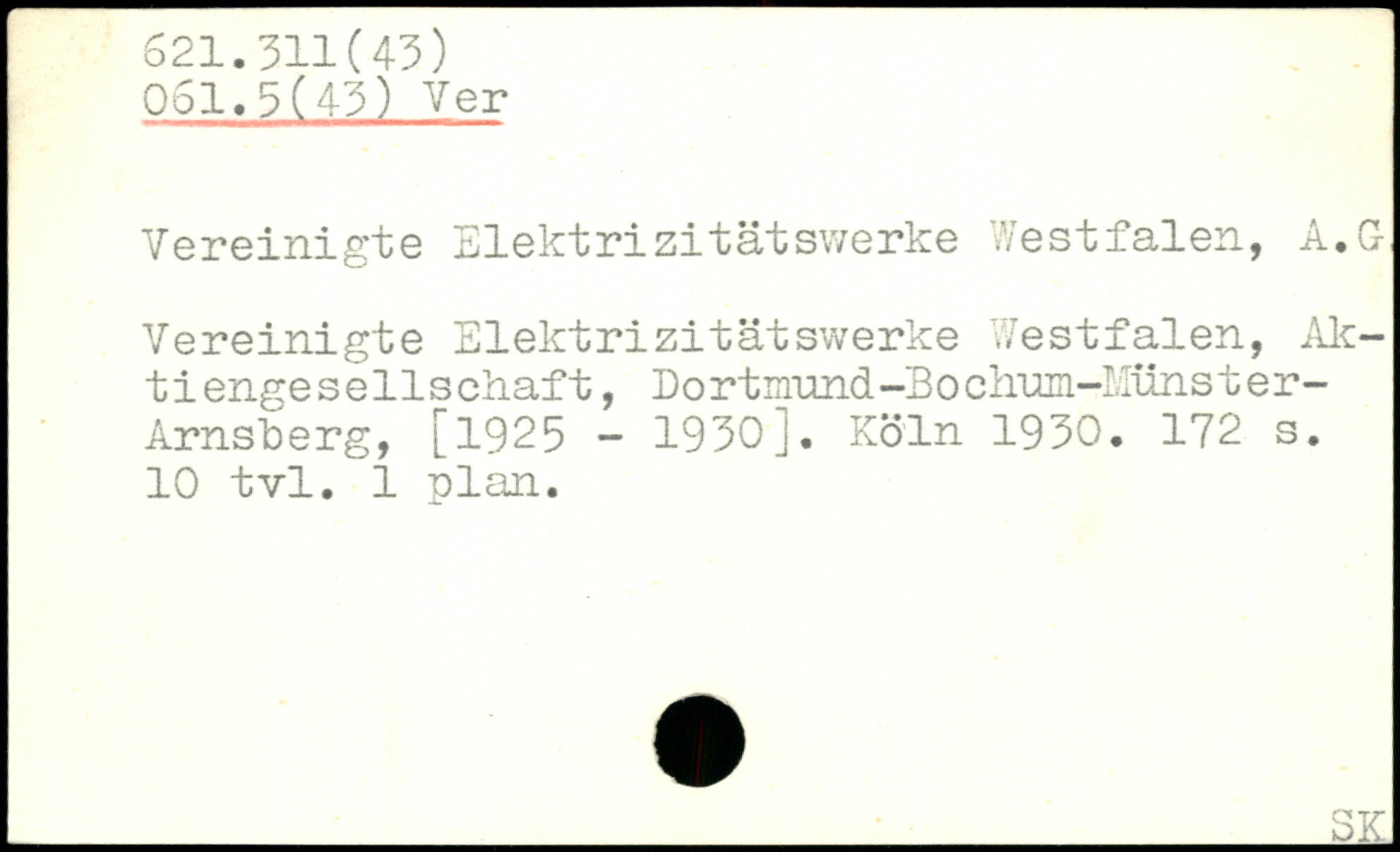 Vereinigte Elektrizitätswerke Westfalen, A.G Vereinigte Elektrizitätswerke Westfalen, Aktiengesellschaft , Dortmund-Bochum-Münster-Arnsberg, [1925 - 1930].