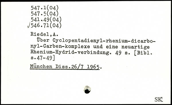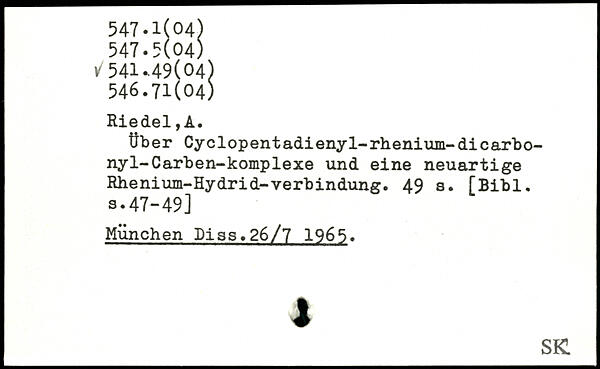 Über Cyclopentadienyl-rhenium-dicarbo-nyl-Carben-komplexe und eine neuartige Rhenium-Hydrid-Verbindung.