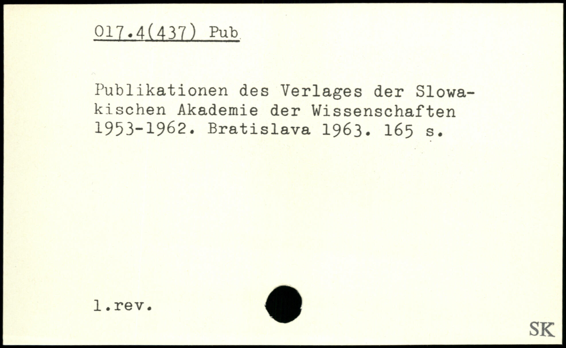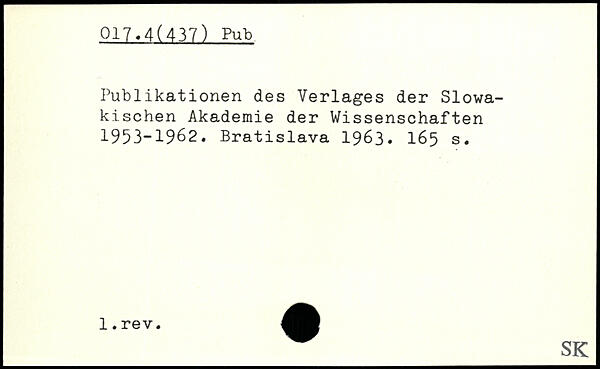 Publikationen des Verlages der Slowakischen Akademie der Wissenschaften 1953-1962. Bratislava 1963. I