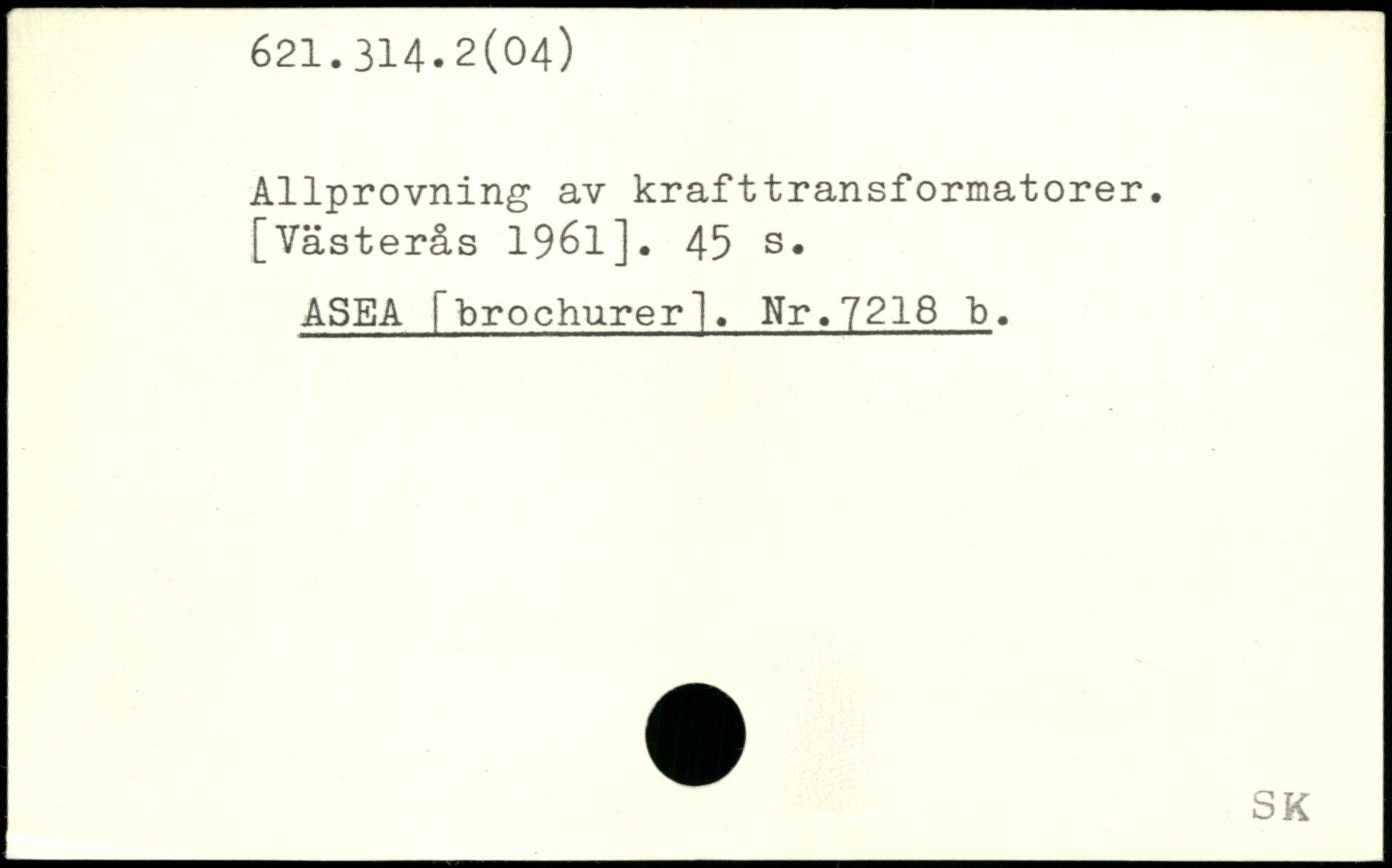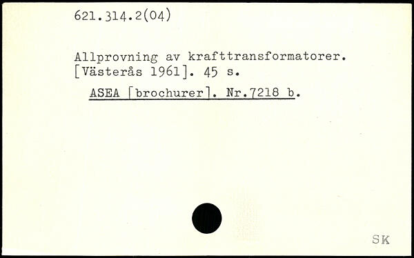 Allprovning av krafttransformatorer. [Västerås 1961].