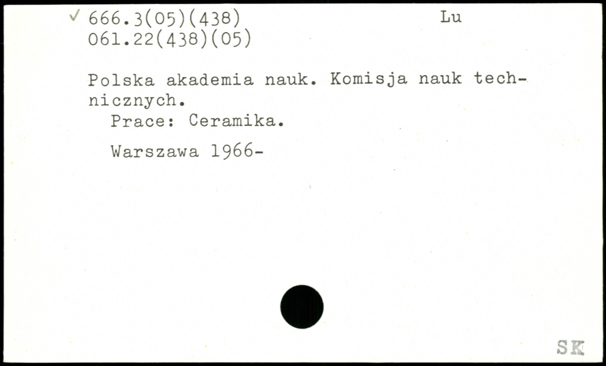Polska akademia nauk. Komisja nauk tech-nicznych. Prace: Ceramika. Warszawa 19 6 6—
