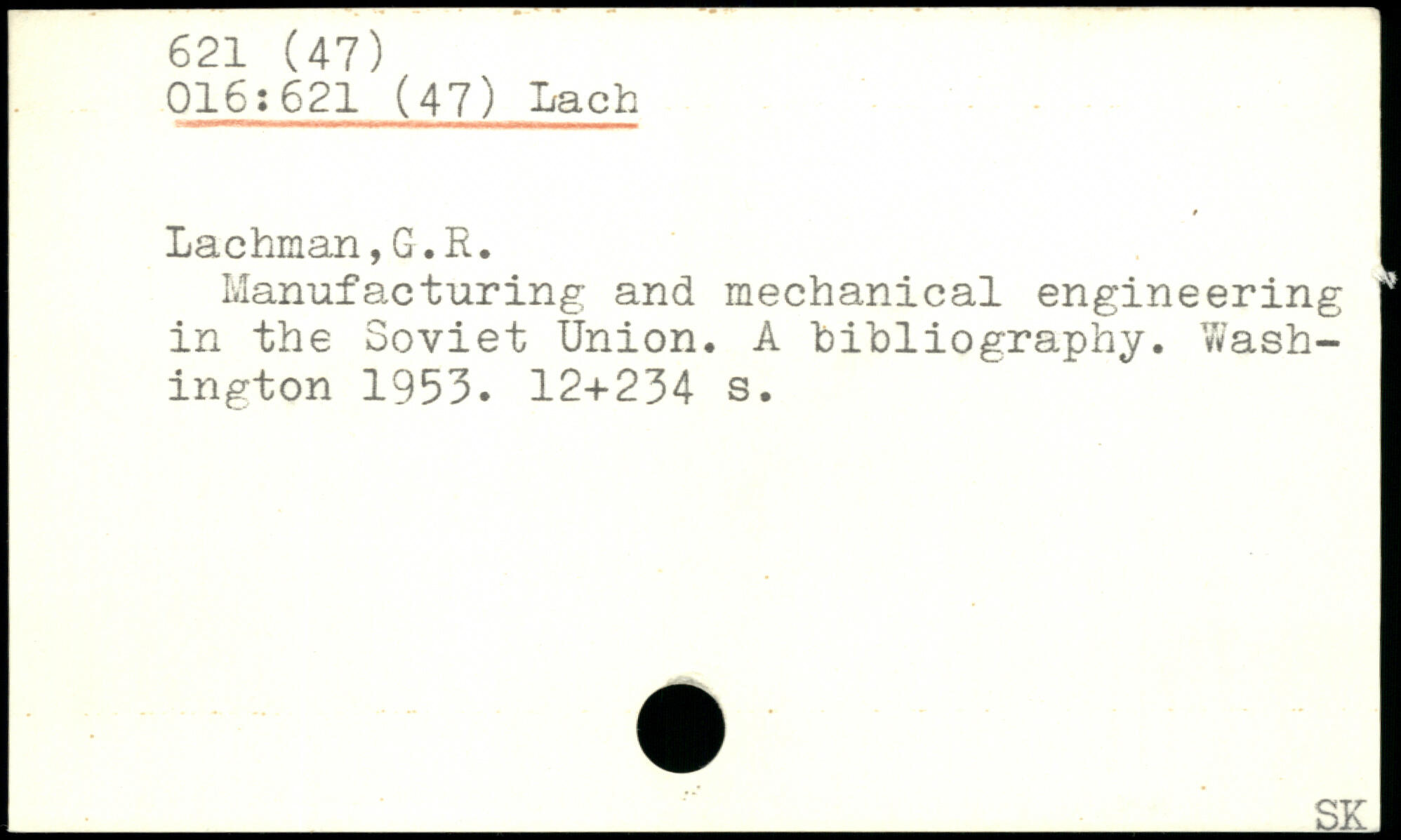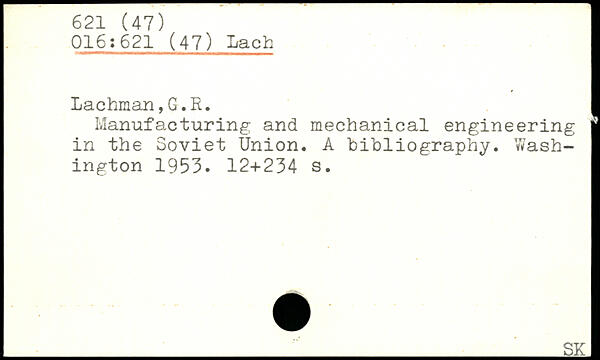 Manufacturing and mechanical engineering in the Soviet Union. A "bibliography. Wash- j ington 1953.