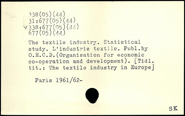 The textile industry. Statistical study. L'industrie textile.