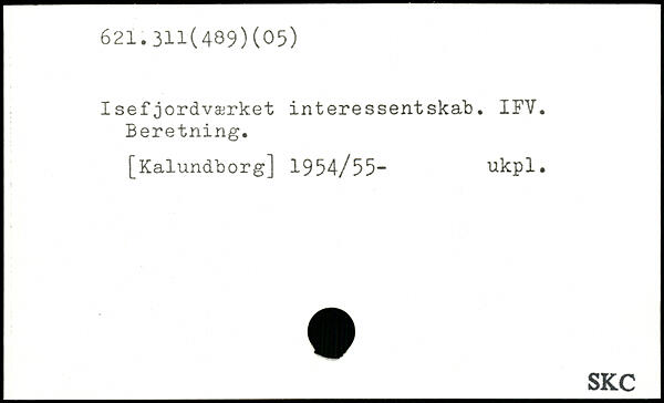 I sefjordværket interessentskab. IFV. Beretning.