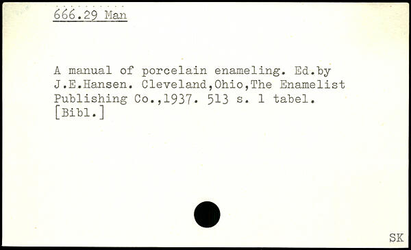 A manual of porcelain enameling. Ed.“by J.E.Hansen.