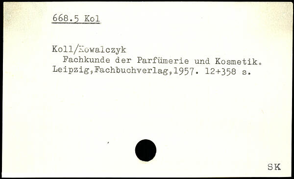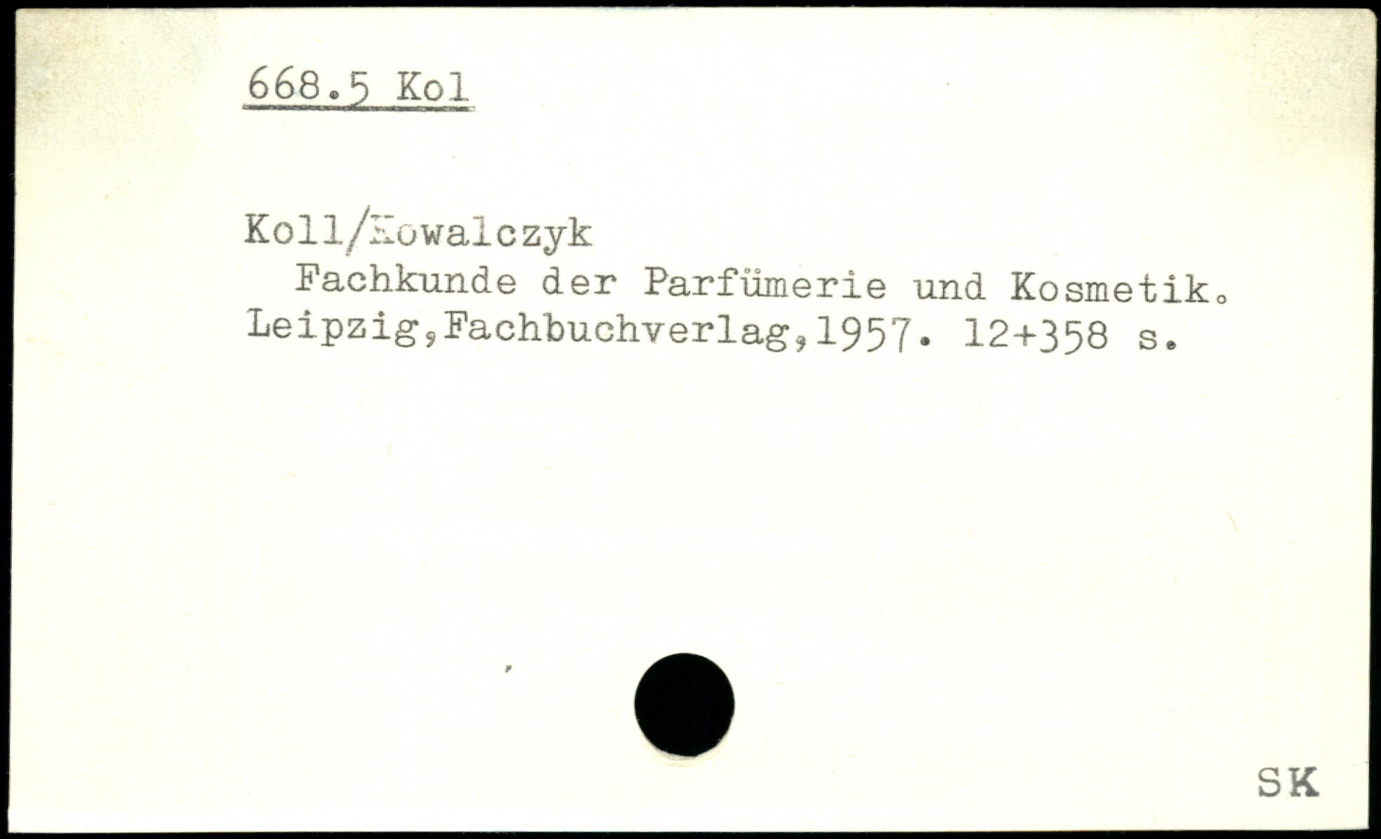 Ko1l/Kowalc zyk Fachkunde der Parfümerie und Kosmetik, Leipzig^Fachbuchverlag,1957.