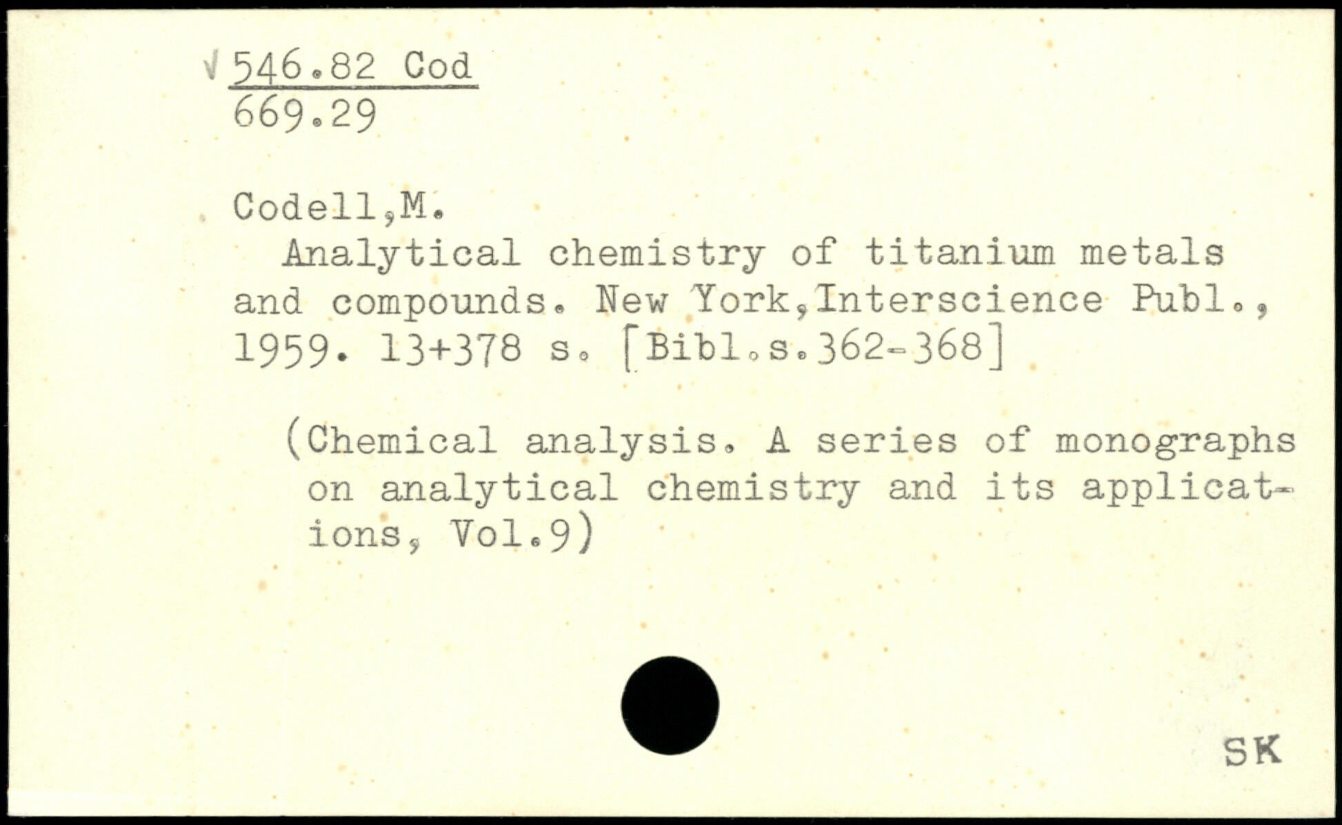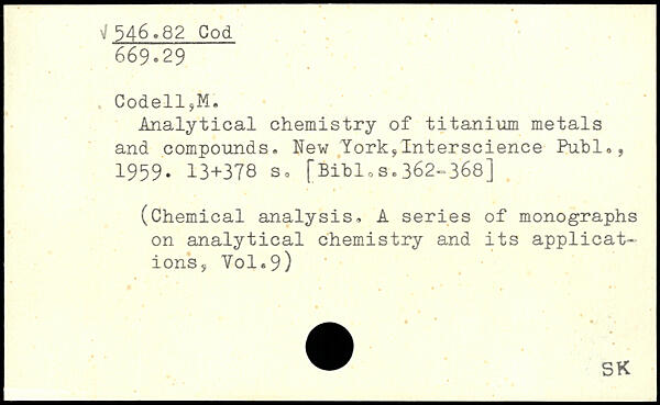 . Codell,M. Analytical chemistry of titanium metals and compounds.