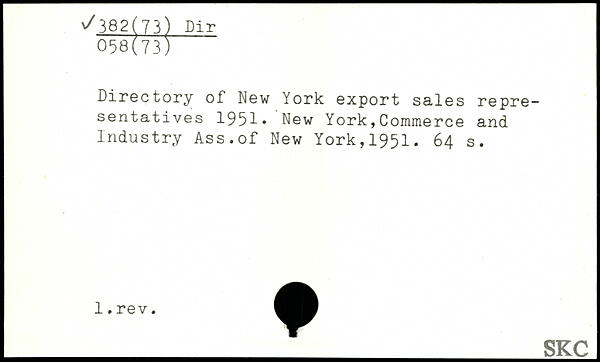 Directory of New York export sales representatives 1951, New York,Commerce and Industry Ass.of New York,1951.