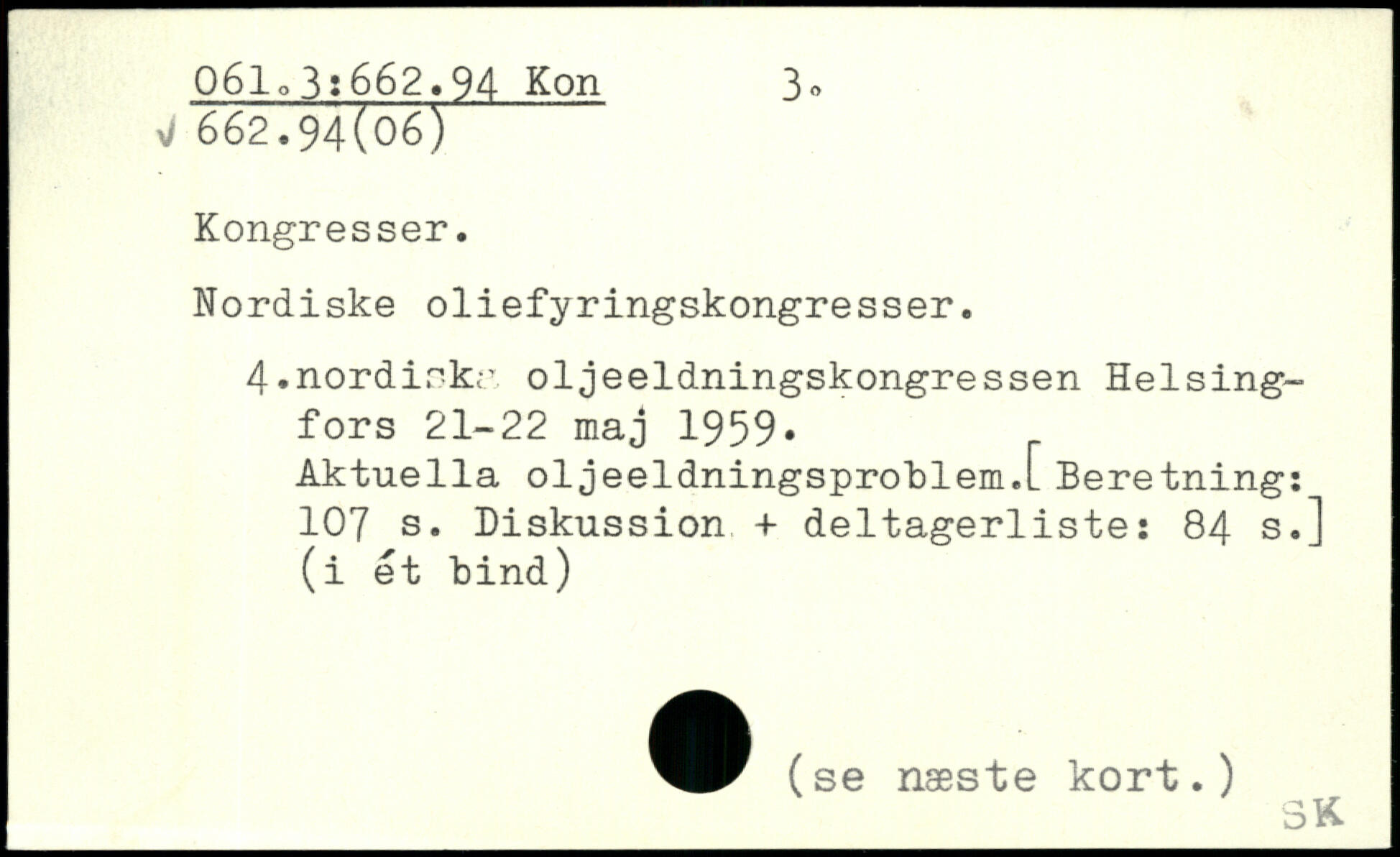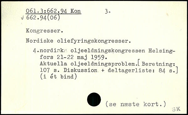 Nordiske oliefyringskongresser. 4.nordinkr oljeeldningskongressen Helsingfors 21-22 maj 1959. Aktuella oljeeldningsproblem.L Beretning: