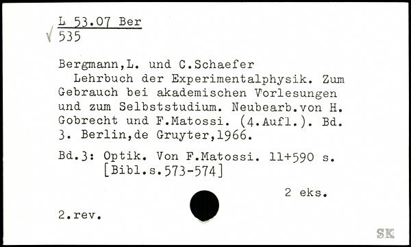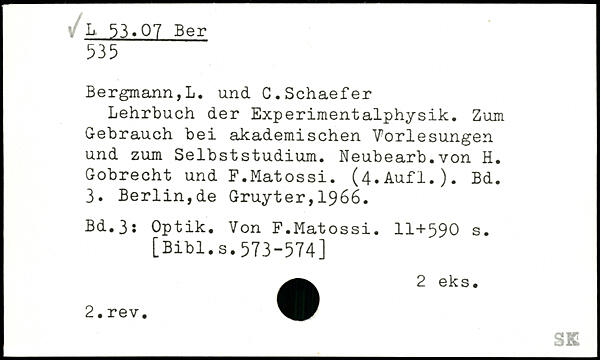 Lehrbuch der Experimentalphysik. Zum Gebrauch bei akademischen Vorlesungen und zum Selbststudium. Neubearb.von H. Gobrecht und F.Matossi. (