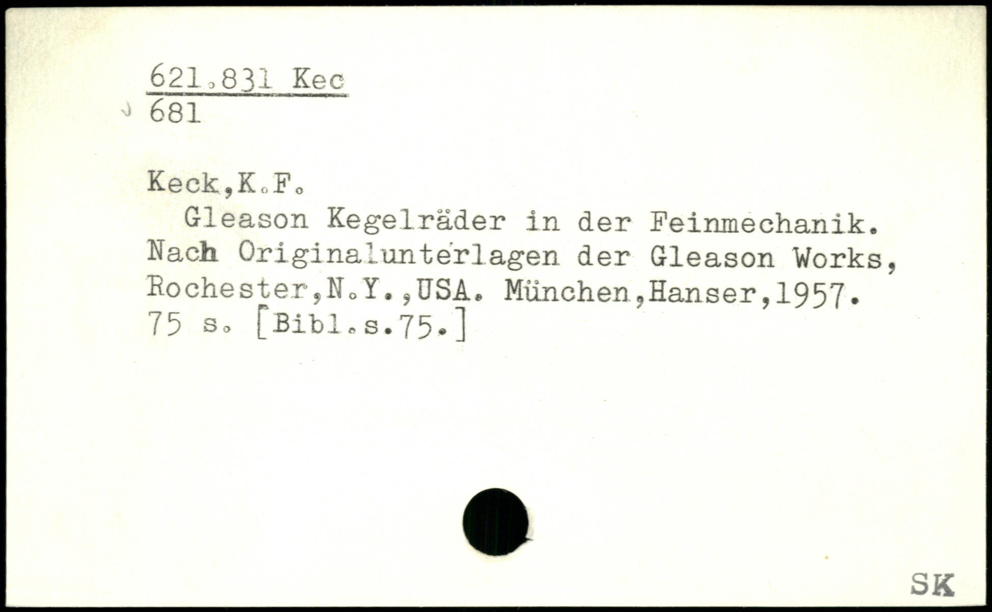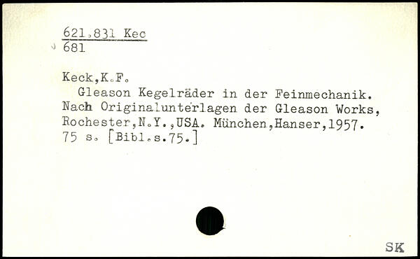 Keck,Kt.F0 Gleason Kegelräder in der Feinmechanik. Nach Originalunterlagen der Gleason Works, Rochester,NoY.,USA.