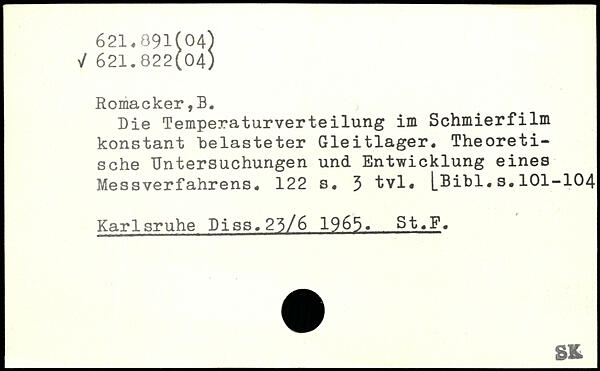 Die Temperaturverteilung im Schmierfilm konstant Belasteter Gleitlager. Theoretische Untersuchungen und Entwicklung eines Messverfahrens.