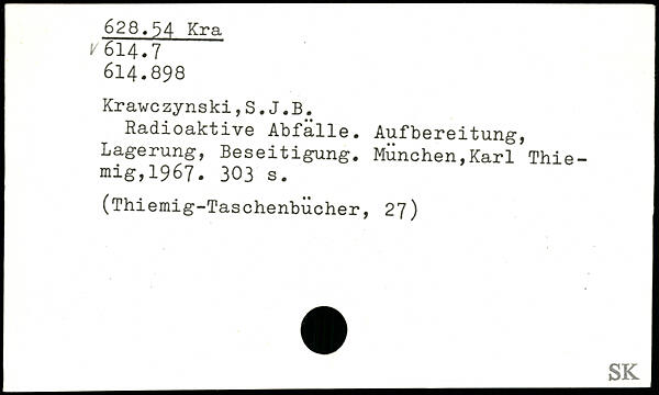 Radioaktive Abfälle. Aufbereitung, Lagerung, Beseitigung. MÜnchen,Karl Thie-mig,1967.