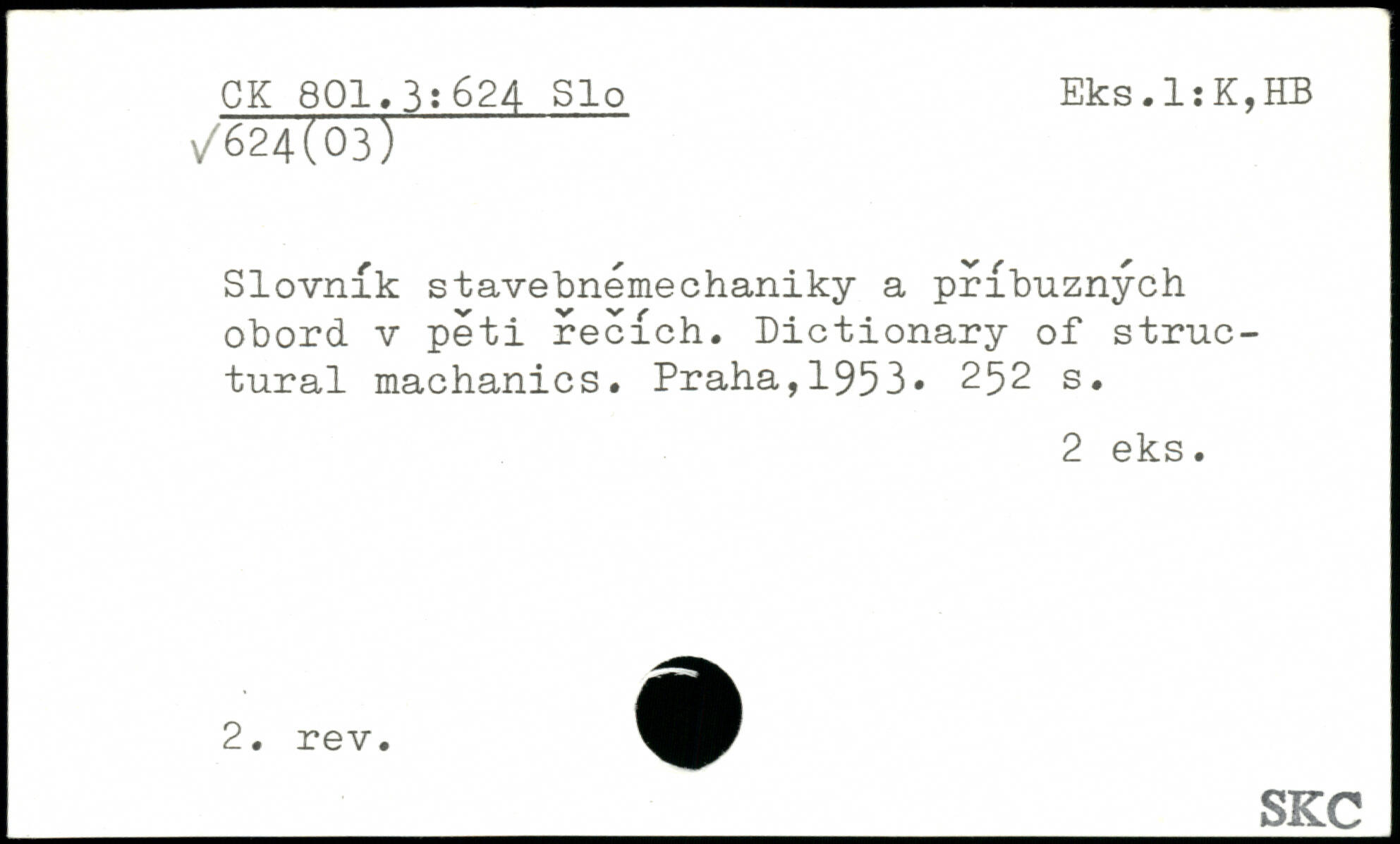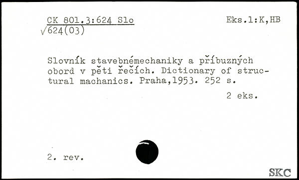 Slovnik stavebnémechaniky a pribuznych obord v peti recich. Dictionary of structural machanics. Praha,1953