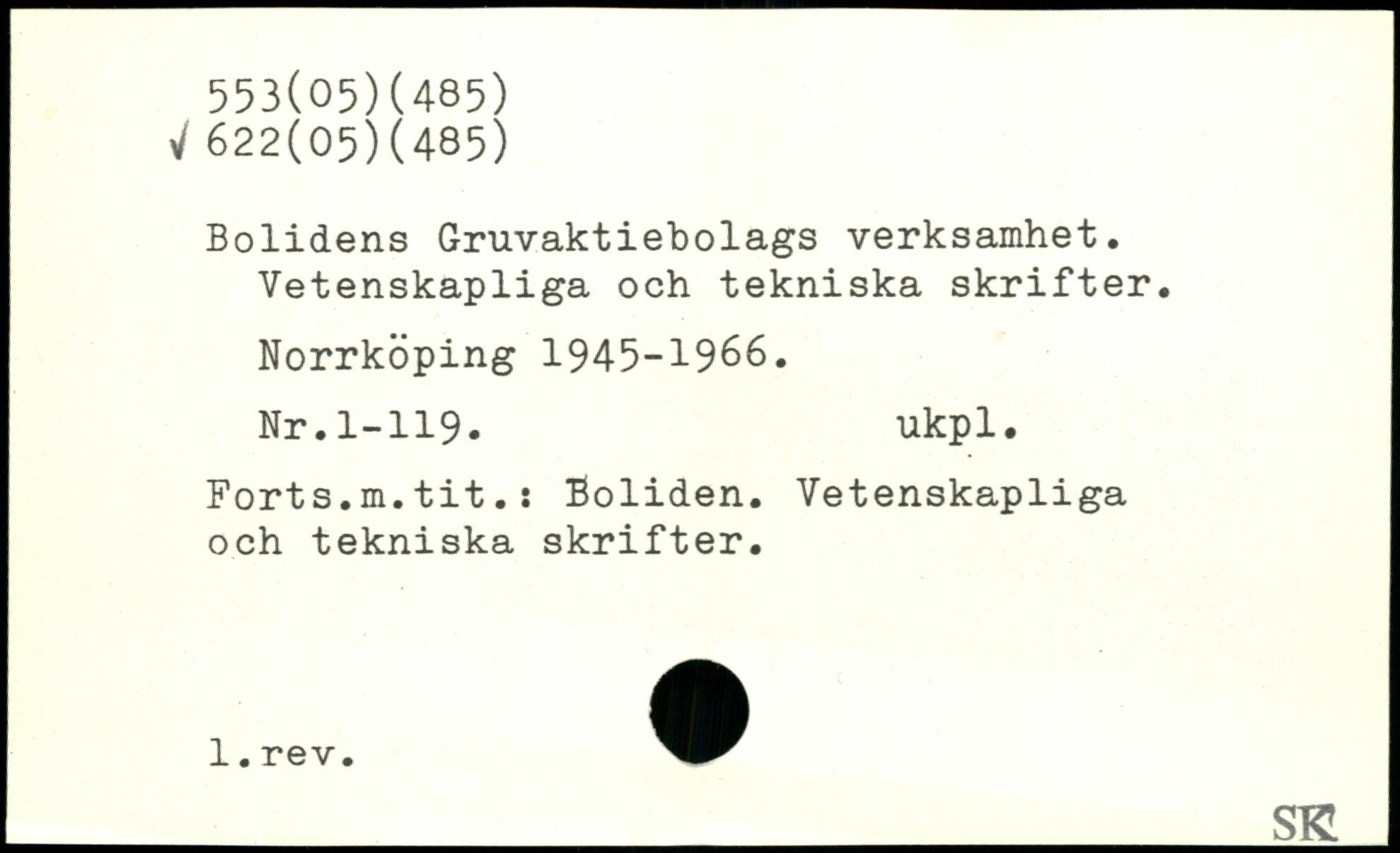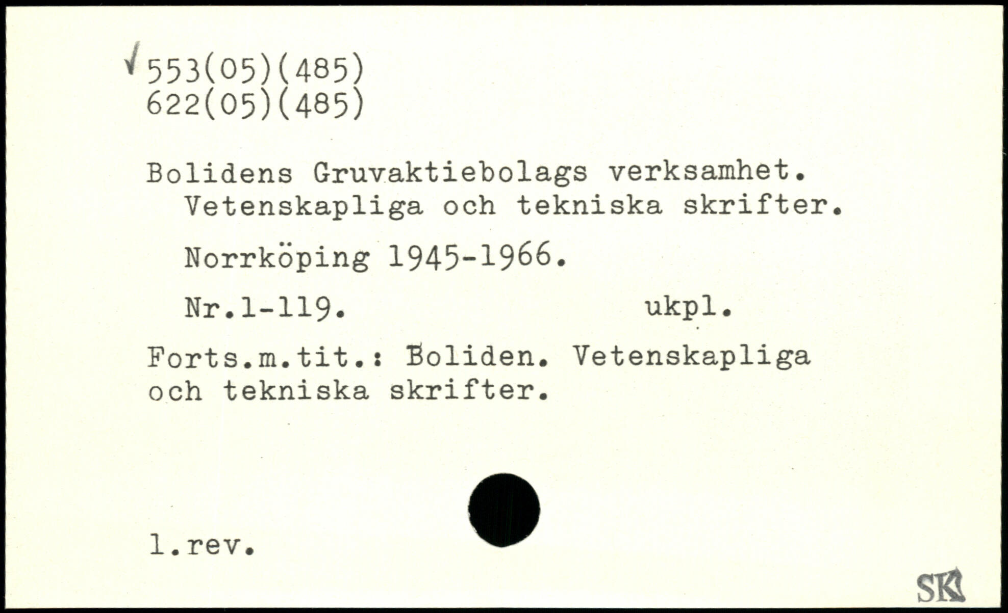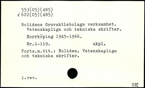 Bolidens Gruvaktiebolags verksamhet. Vetenskapliga och tekniska skrifter.