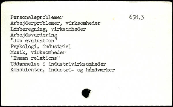 Arbejderproblemer, virksomheder Lønberegning, virksomheder Arbejds vurdering "Job evaluation" Psykologi, industriel Musik, virksomheder "Human relations" Uddannelse i industrivirksomheder Konsulenter, industri- og håndværker