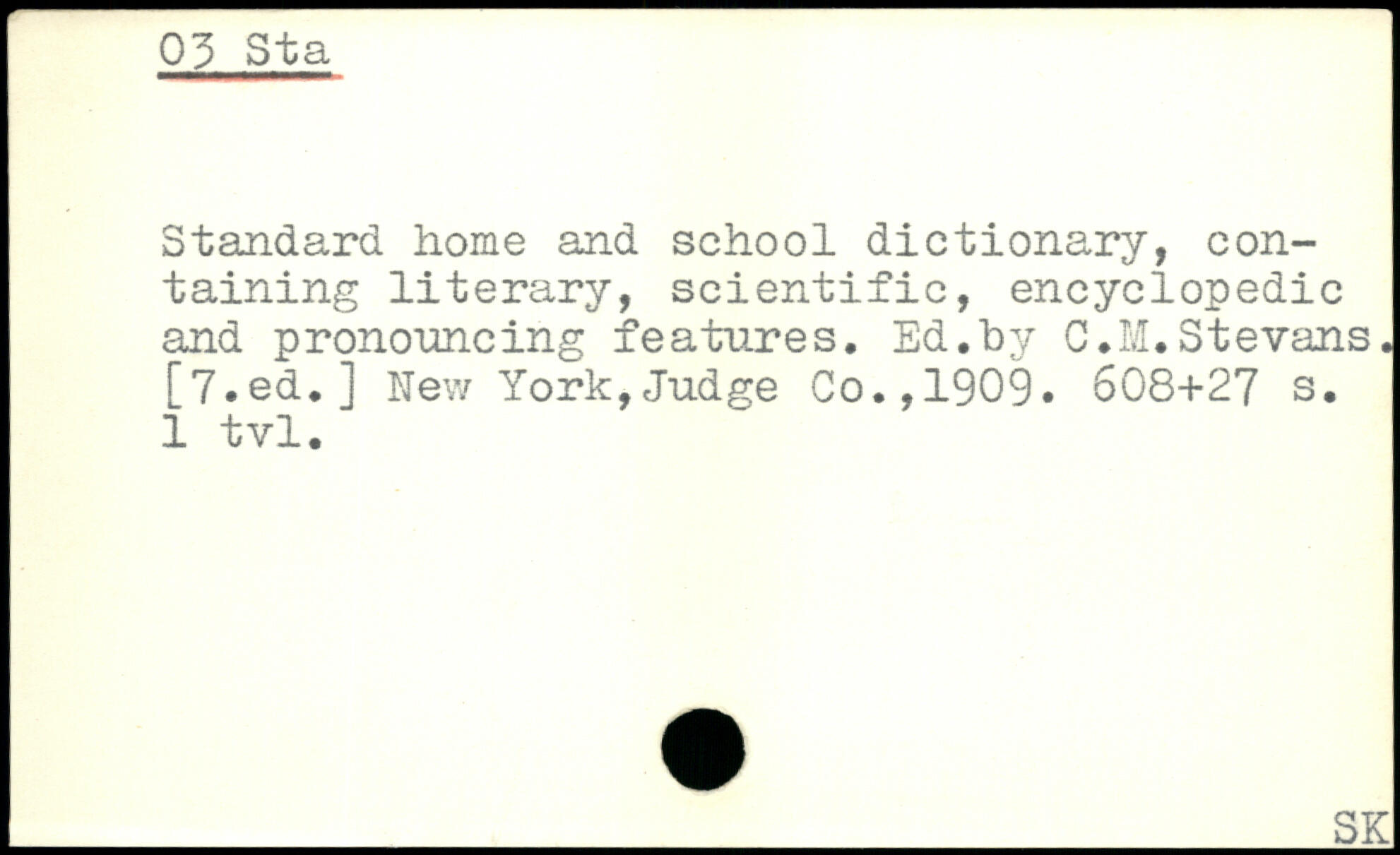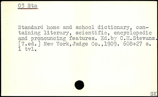 Standard home and school dictionary, containing literary, scientific, encyclopedic and pronouncing features. Ed.by C.M.Stevans. [