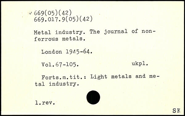 Metal industry. The journal non" ferroils metals. London 19^5—64.