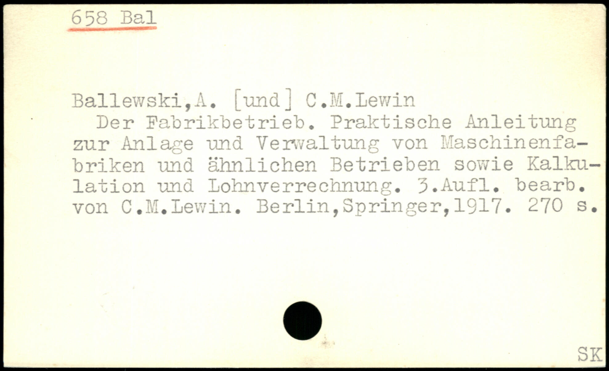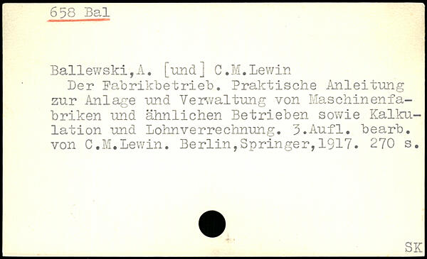 Bailewski,A. [und] C.M.Lewin Der Fabrikbetrieb. Praktische Anleitung zur Anlage und Verwaltung von Maschinenfabriken und ähnlichen Betrieben sowie Kalkulation und lohnverrechnung.
