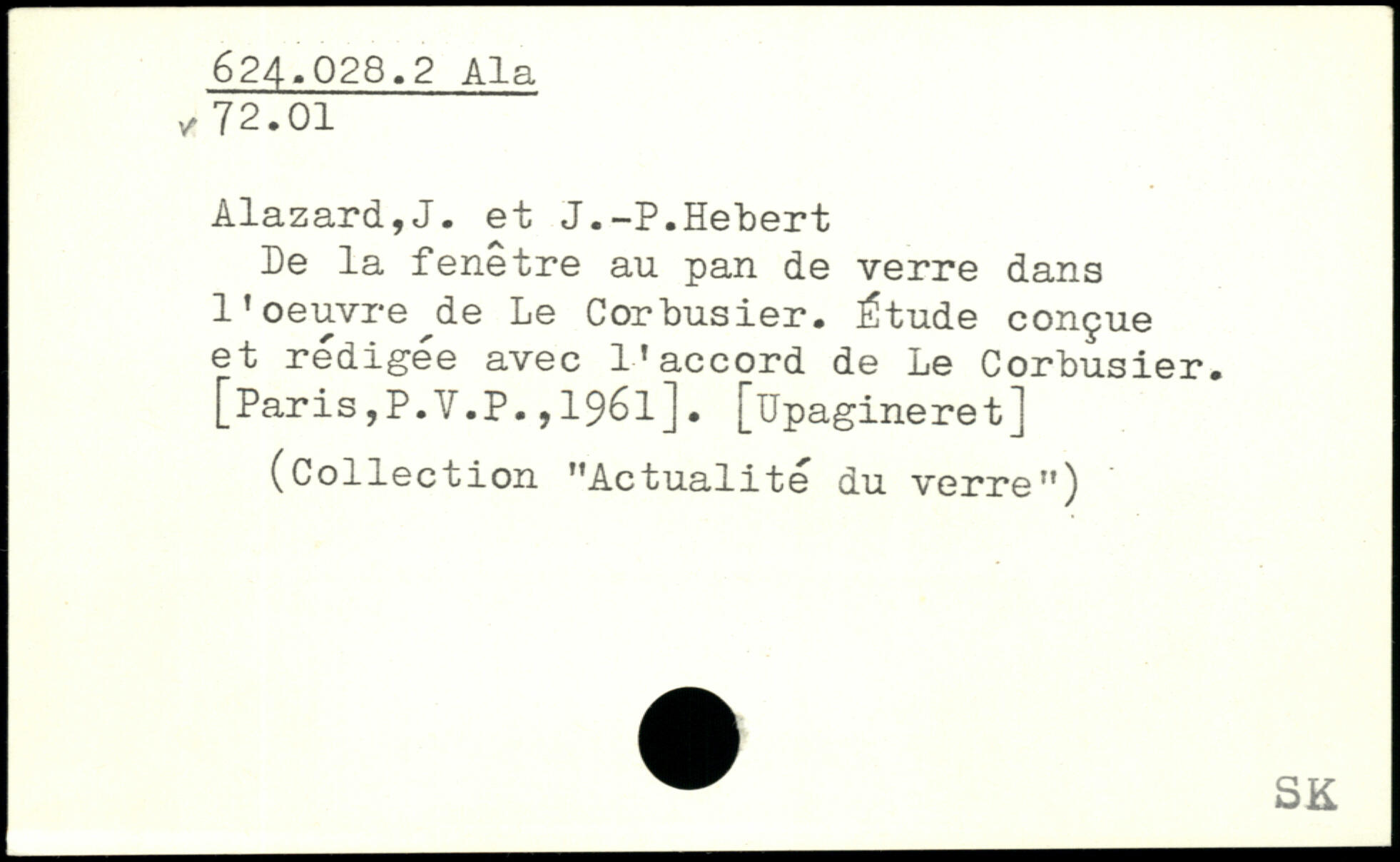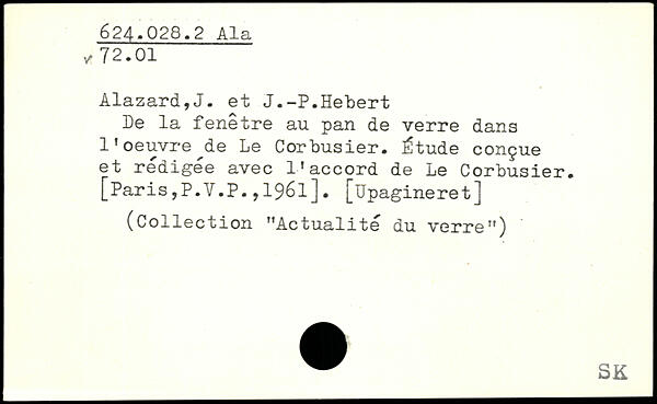 De la fenetre au pan de verre dans lfoeuvre de Le Corbusier. Étude conçue et redigee avec l’accord de Le Corbusier. [