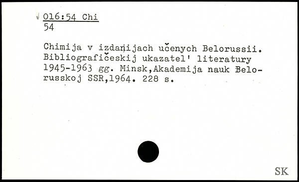Chimija v izdarjijach ucenych Belorussii. Bibliograficeskij ukazatel' literatury 1945-1963 gg. MinskjAkadernija nauk Belo-russkoj SSR,1964.