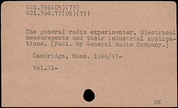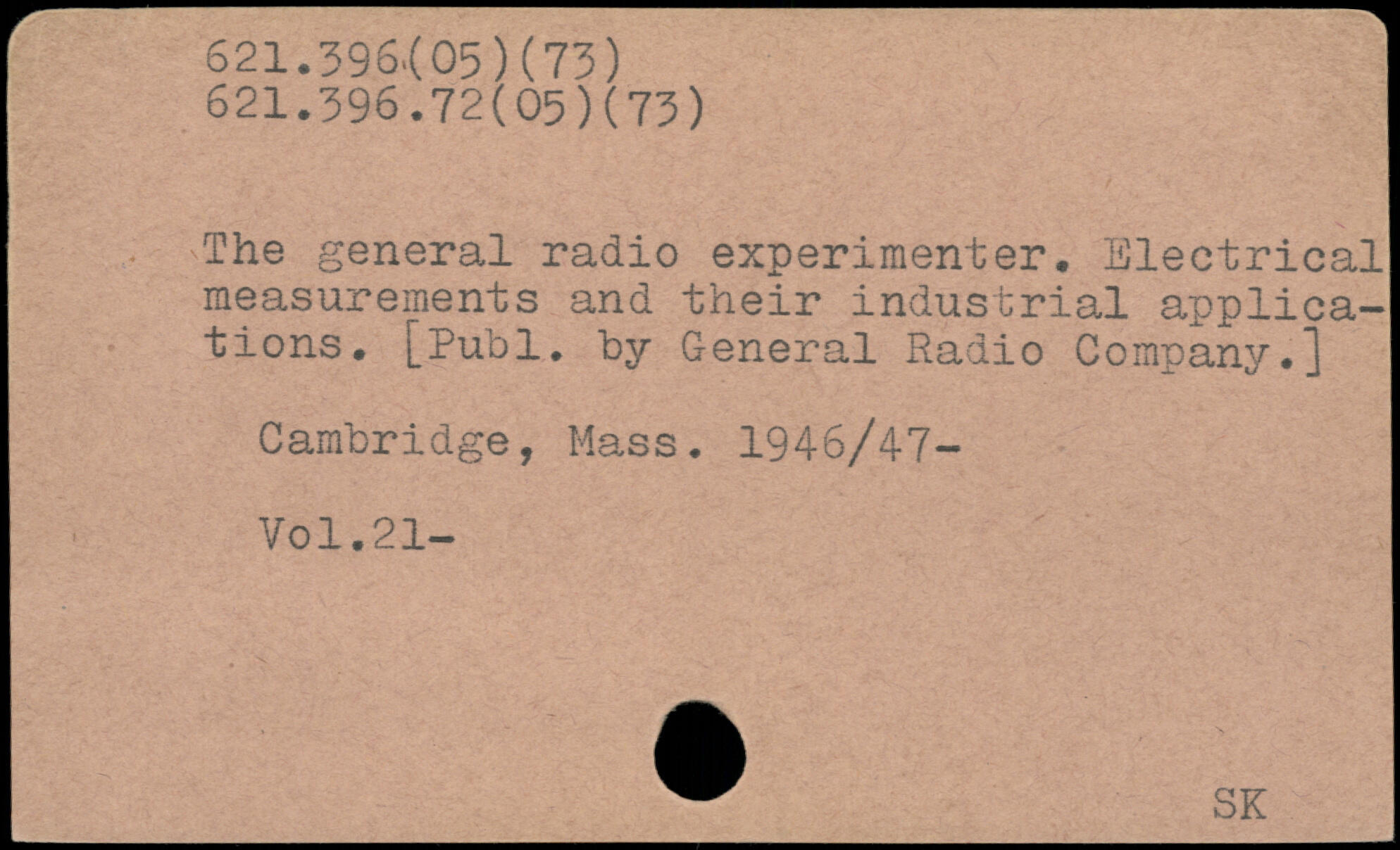 The general radio experimenter. Electrical measurements and their industrial applications.