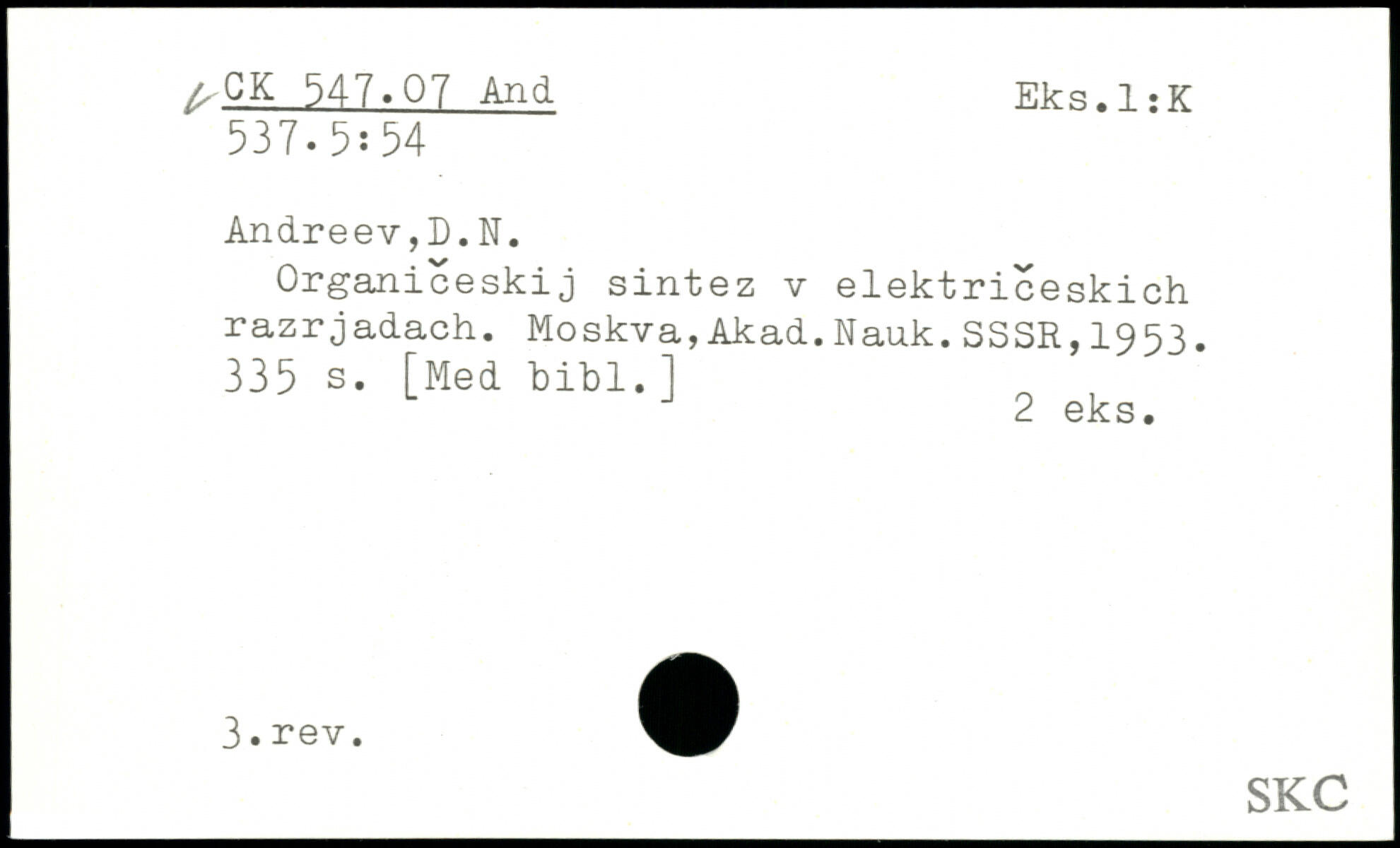 Organiceskij sintez v elektriceskich razrjadach. Moskva,Akad.Nauk.SSSR,1953.