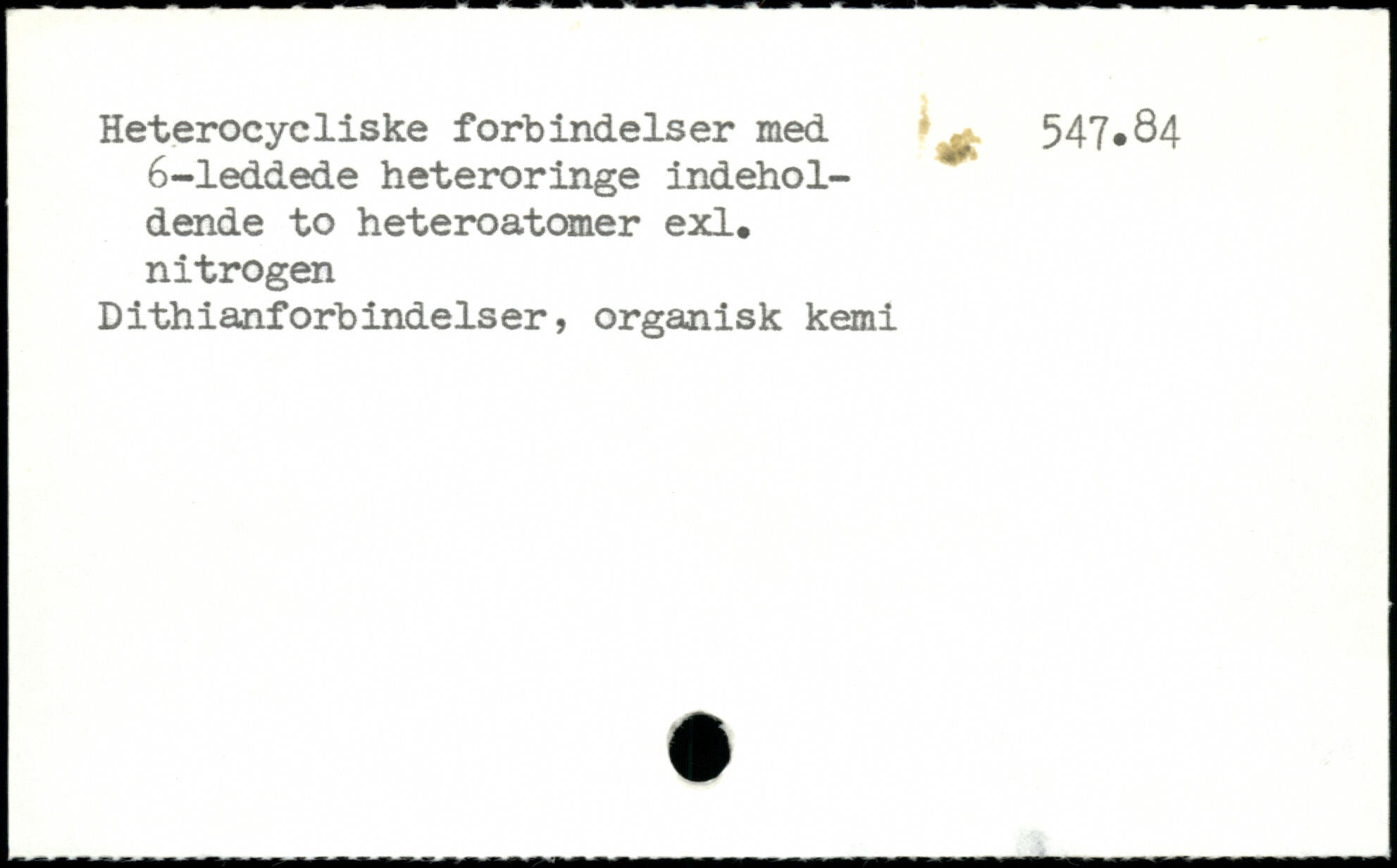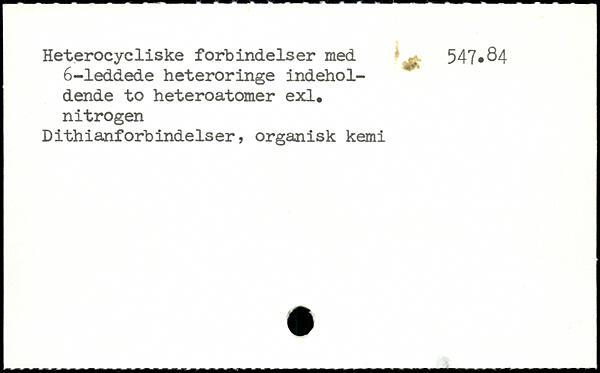 Heterocycliske forbindelser med 547.84 6-leddede heteroringe indeholdende to heteroatomer exl. nitrogen Dithianforbindelser, organisk kemi