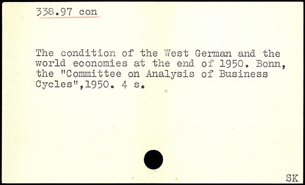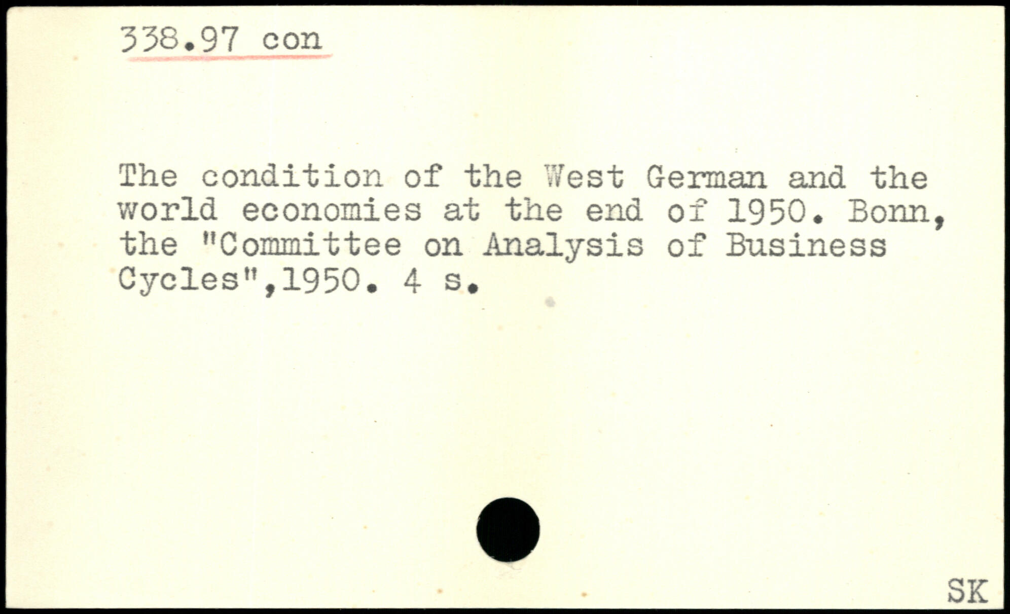 The condition of the West German and the world economies at the end of 1950. Bonn, the ”Committee on Analysis of Business Cycles”,1950.
