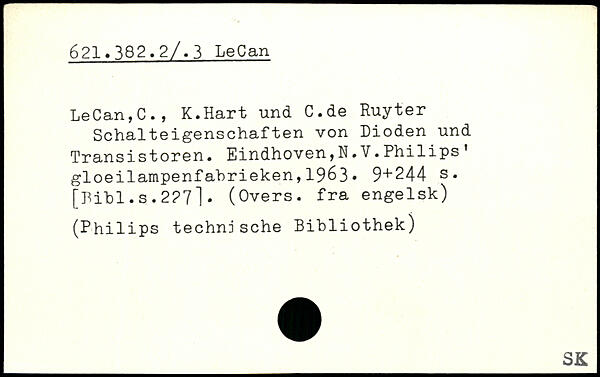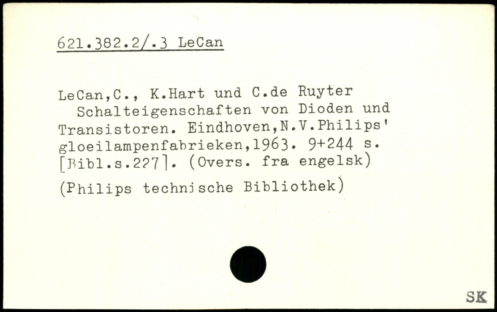 LeCan,C., K.Hart und C.de Ruyter Schalteigenschaften von Dioden und Transistoren. Eindhoven,N.V.Philips1 gloeilampenfahrieken,1963.