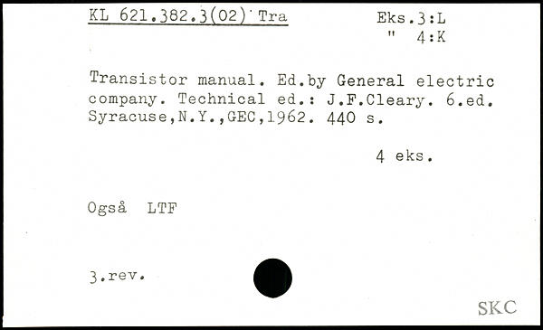 Transistor manual. Ed.by General electric company. Technical ed.: J.F.Cleary.