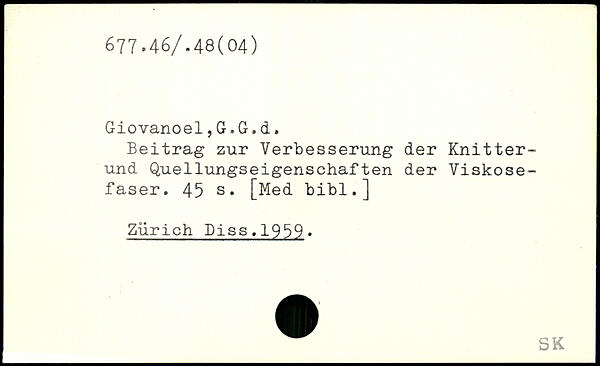 Giovanoel,G.G.d. Beitrag zur Verbesserung der Knitter-und Quellungseigenschaften der Viskosefaser.