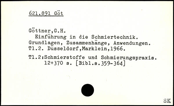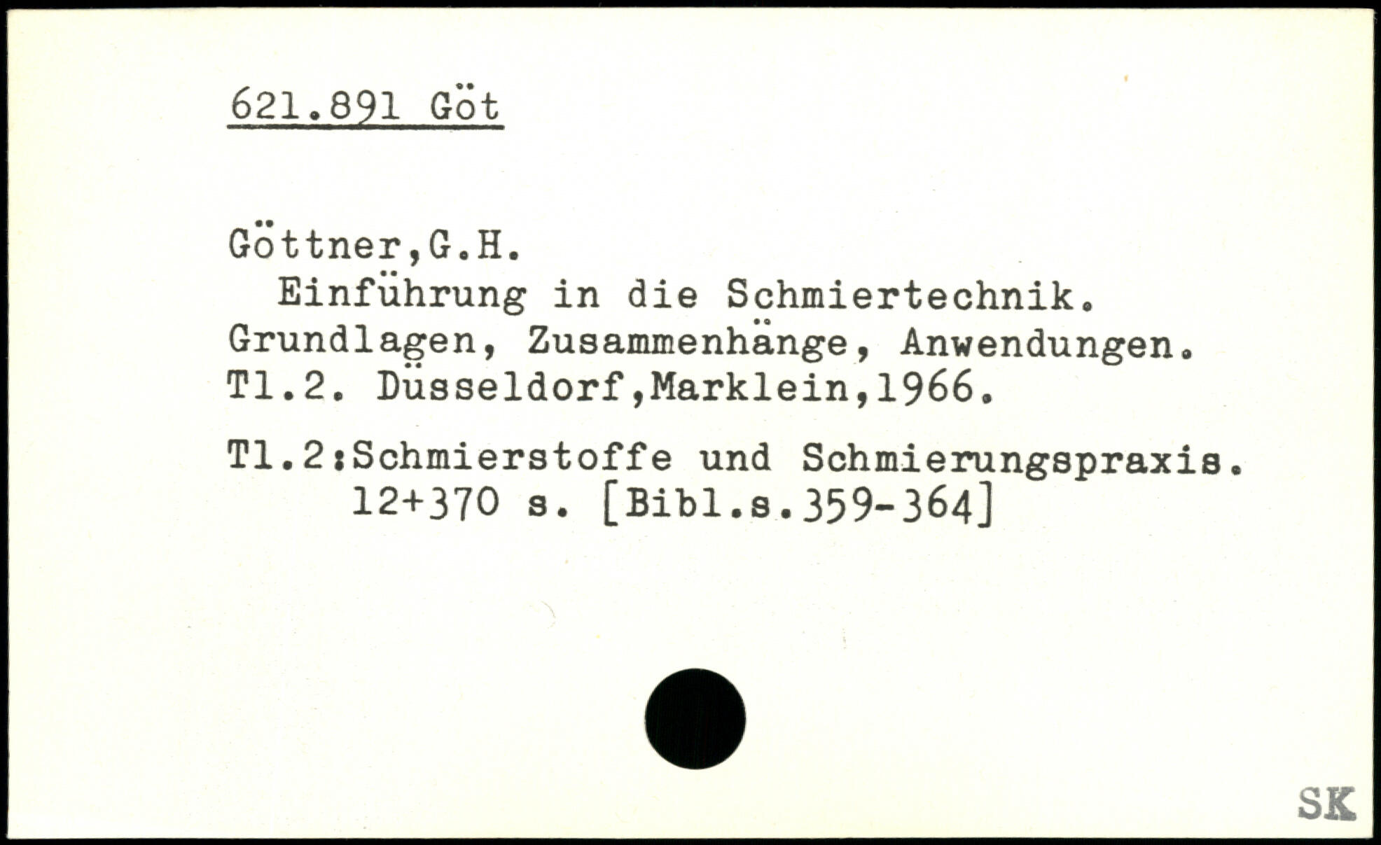 Einführung in die Schmiertechnik. Grundlagen, Zusammenhänge, Anwendungen. TI.2.