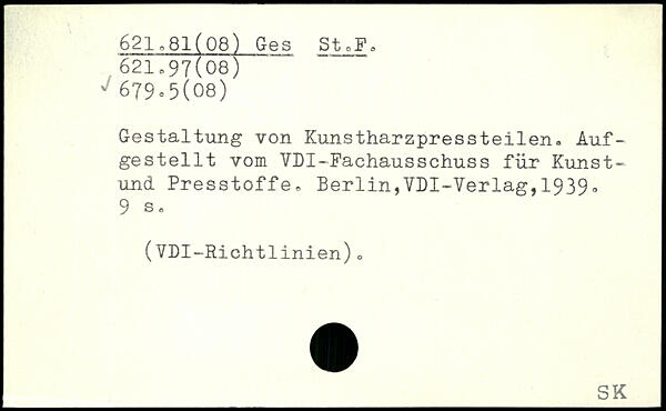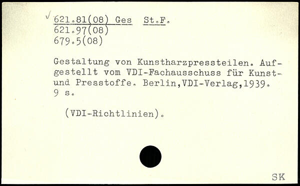 Gestaltung von Kunstharzpressteilen. Aufgestellt vom