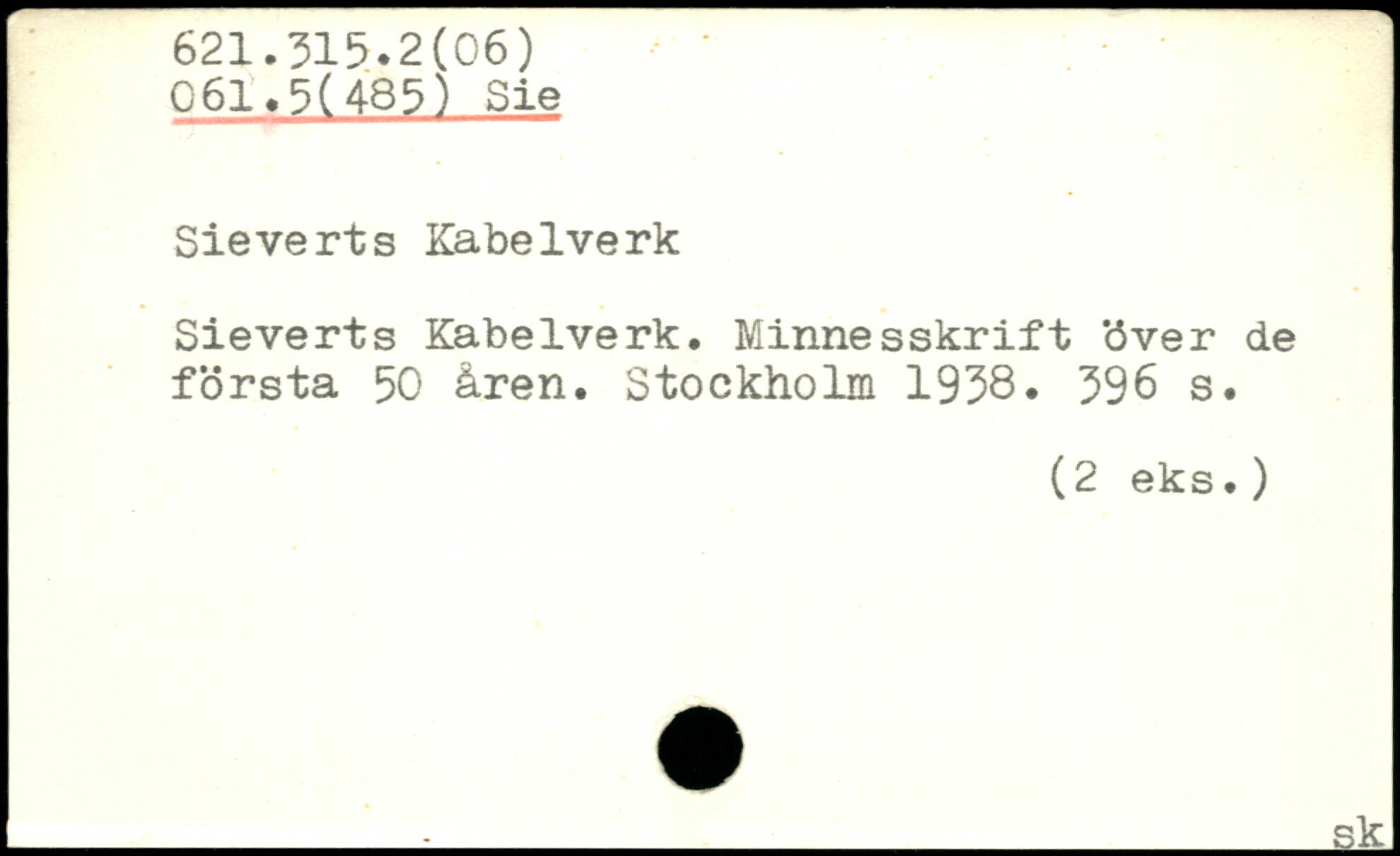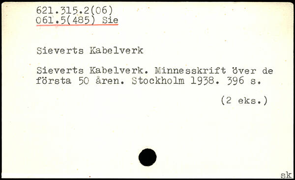 Sieverts Kabelverk Sieverts Kabelverk. Minnesskrift bver de första 50 åren.